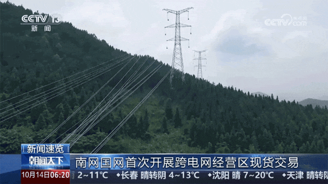 10月14日,央視《新聞聯播》刊播《兩大電網首次開展跨電網經營區現貨交易》報道。