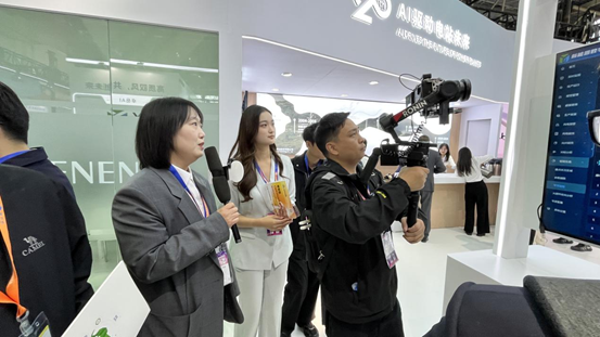 開展首日,展區(qū)眾多專業(yè)訪客蒞臨,與來自全球的能源企業(yè)代表、行業(yè)專家、技術(shù)工程師及媒體記者展開了深度交流。通過三維可視化大屏、AI智慧電站解決方案實時互動等環(huán)節(jié),岳能科技動態(tài)展示了其在風(fēng)電、光伏、儲能等領(lǐng)域的數(shù)智化管控能力,特別是其“新能源+AI”的前沿技術(shù)應(yīng)用,成為現(xiàn)場熱議的話題。