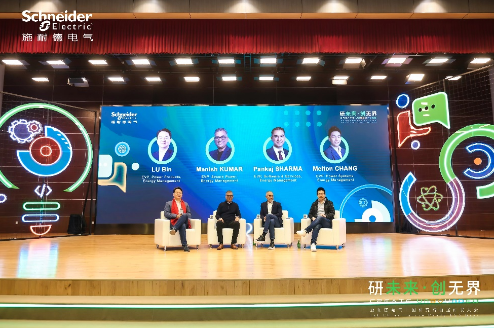 在業務線圓桌論壇環節,施耐德電氣執行副總裁、能源管理低壓配電產品事業部負責人陸斌,施耐德電氣執行副總裁、能源管理關鍵電源業務負責人Manish Kumar,施耐德電氣執行副總裁、能源管理軟件與服務業務負責人Pankaj Sharma,與施耐德電氣執行副總裁、能源管理電力系統業務負責人Melton Chang,圍繞產業發展趨勢、全球業務布局及跨領域創新合作展開深度對話,為研發團隊明確了未來技術布局與中國研發定位。