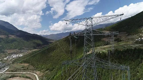 ▲目前世界上電壓等級最高、輸送容量最大、送電距離最遠的輸電技術——特高壓±800千伏直流輸電工程投入運行。
